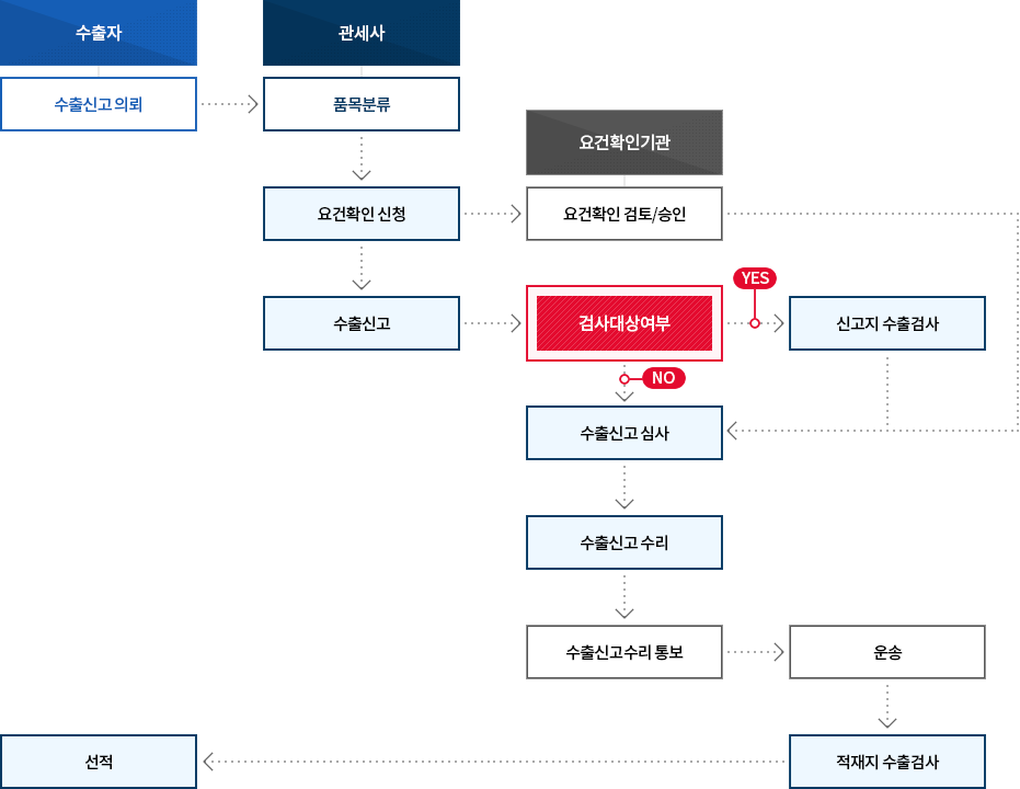 - 수출통관 시 서류심사 또는 검사를 실시할 수 있습니다.